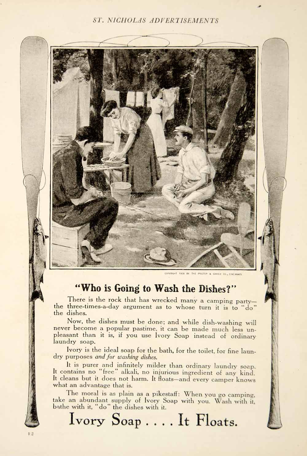 This is an original 1909 black and white print ad for Ivory Soap for washing dishes.