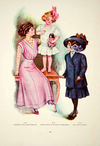 This is an original 1909 color print depicting an Edwardian woman and children.
