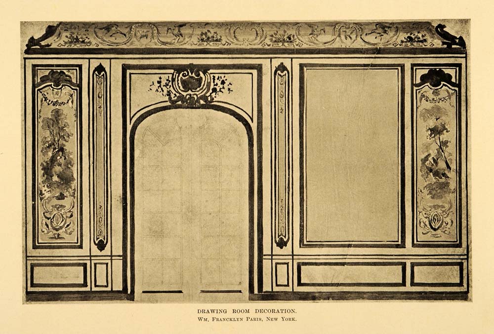 This is an original 1909 halftone print of an decorative design for a drawing room by William Francklyn Paris.