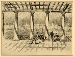 This is an original 1909 halftone print by Joseph Pennell of a recreation pier in New York City.