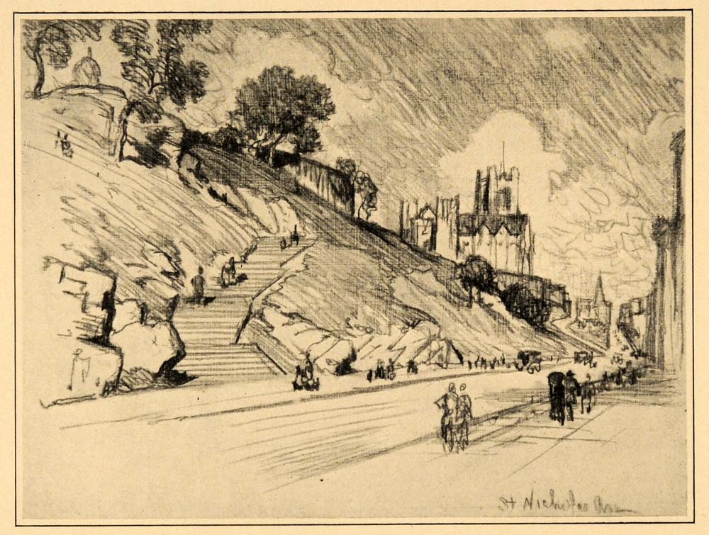 This is an original 1909 halftone print by Joseph Pennell of Saint Nicholas Avenue in New York City.