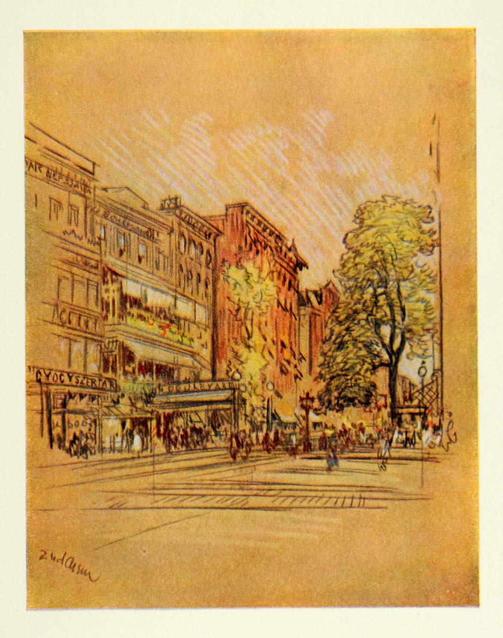 This is an original 1909 color print by Joseph Pennell of Second Avenue in New York City.