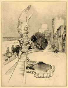 1909 Pennell Eagle Fountain Riverside Drive NYC Print ORIGINAL HISTORIC NY5