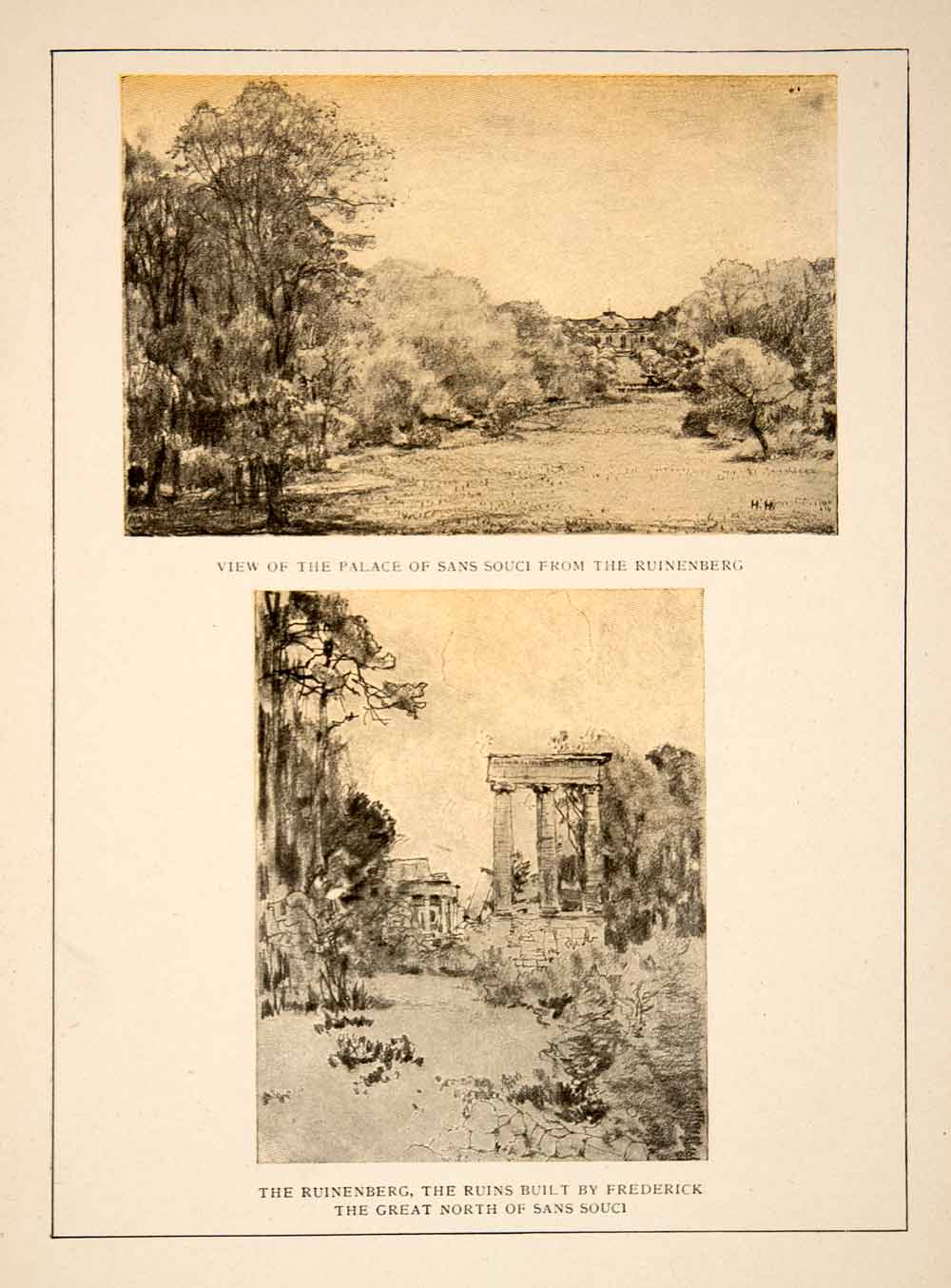 1909 Photolithograph Hans Herrmann Palace Sanssouci Ruinenberg Monopteros XGCB3