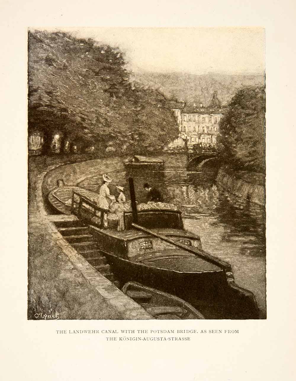 1909 Photolithograph Landwehr Canal Potsdam Bridge Boat Germany Art XGCB3