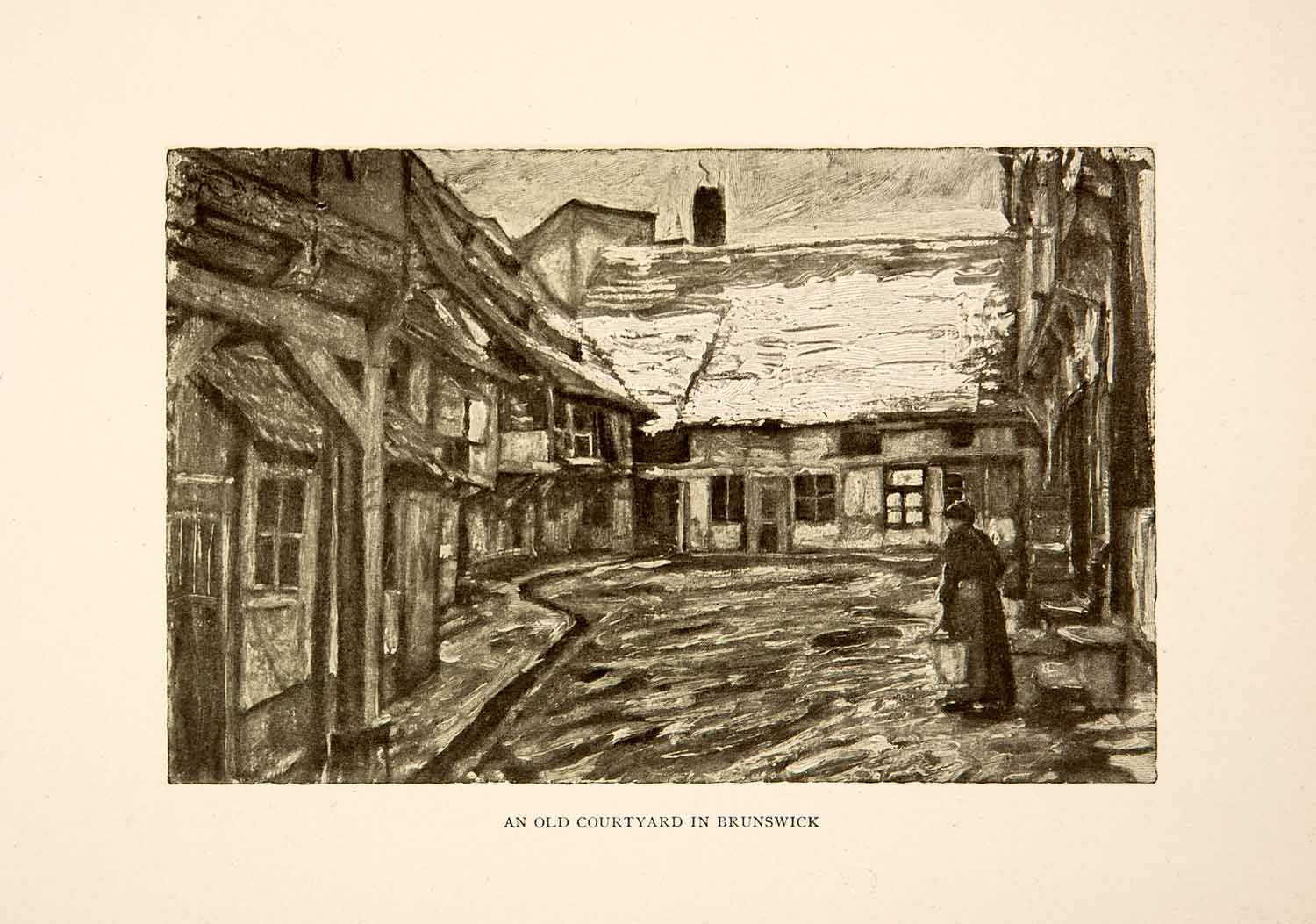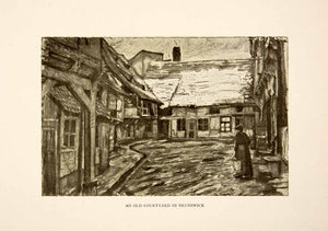 1909 Photolithograph Old Courtyard Brunswick Germany Street Half-Timbered XGCB3