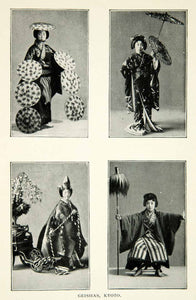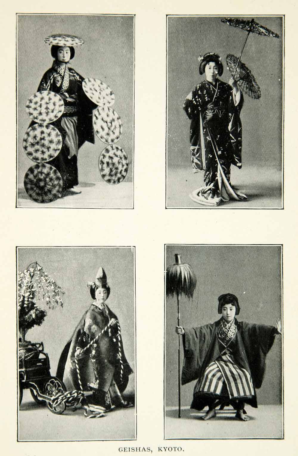 This is an original 1909 monochrome halftone print of Geishas from Kyoto, Japan.