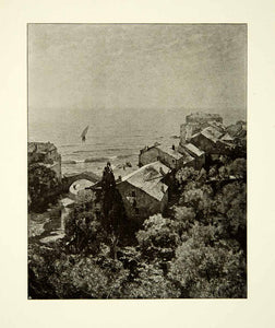 Keywords specific to this image: Mediterranean, Sea, Town, Coast, Shore, Boat, Trees, Nature, Outdoor, Travel, Italy