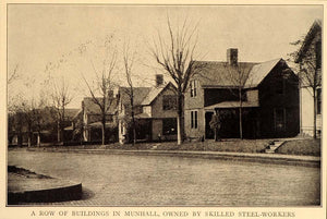 This is an original 1909 halftone print of mill workers' houses in Munhall near Pittsburgh. (Please note that, typical of halftone prints, there is printing on the reverse.)
