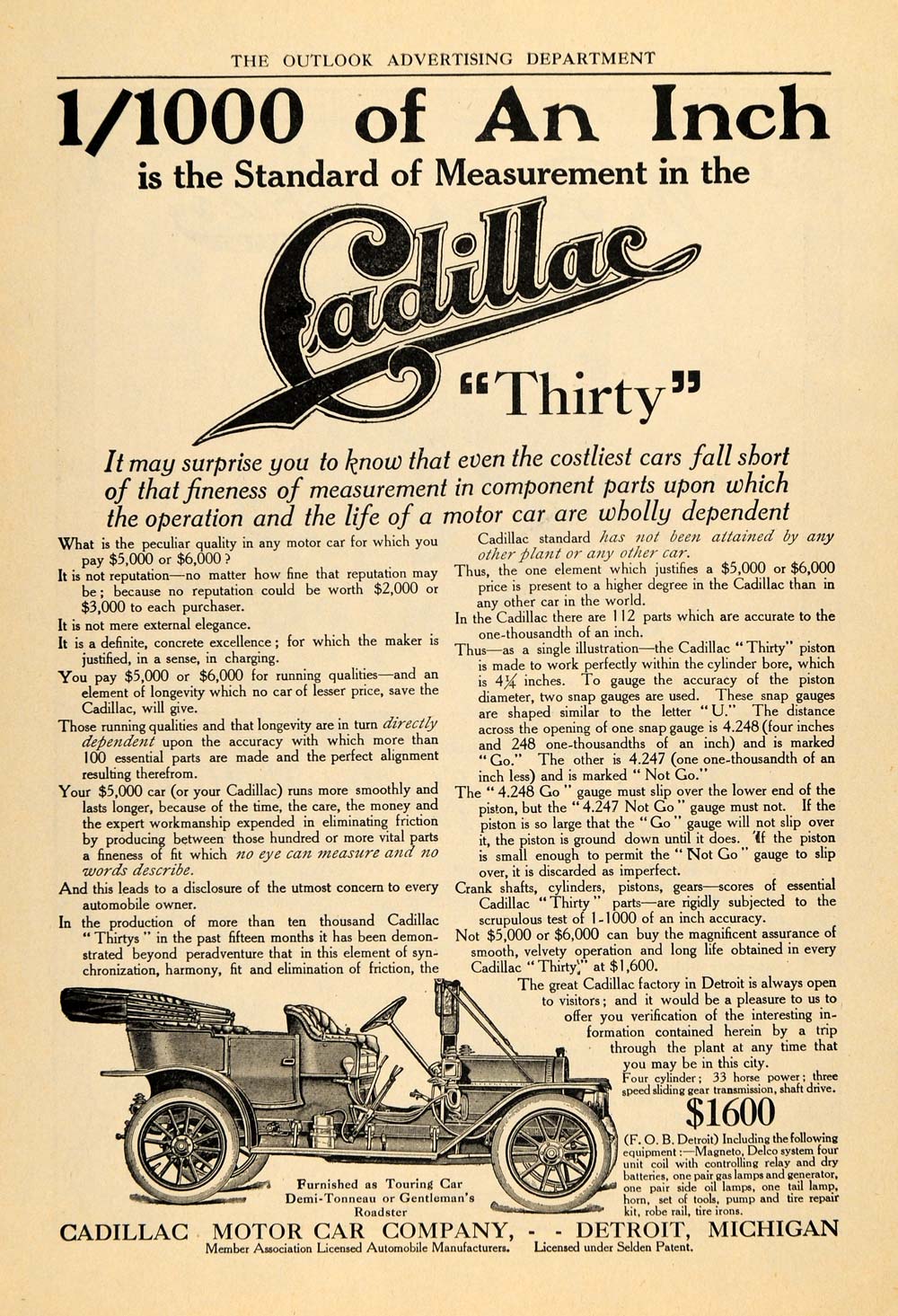 This is an original 1910 black and white print ad for the Touring Car, Demi-Tonneau, or Gentleman's Roadster from the Cadillac Motor Co. located in Detroit, Michigan.
