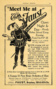 Keywords specific to this image: nightclub, entertainment, music, musical, show, performance, nightlife, dining, meal, eating, luncheon, Columbus Circle, quartette, comedians, singers, cuisine Vintage Advertising