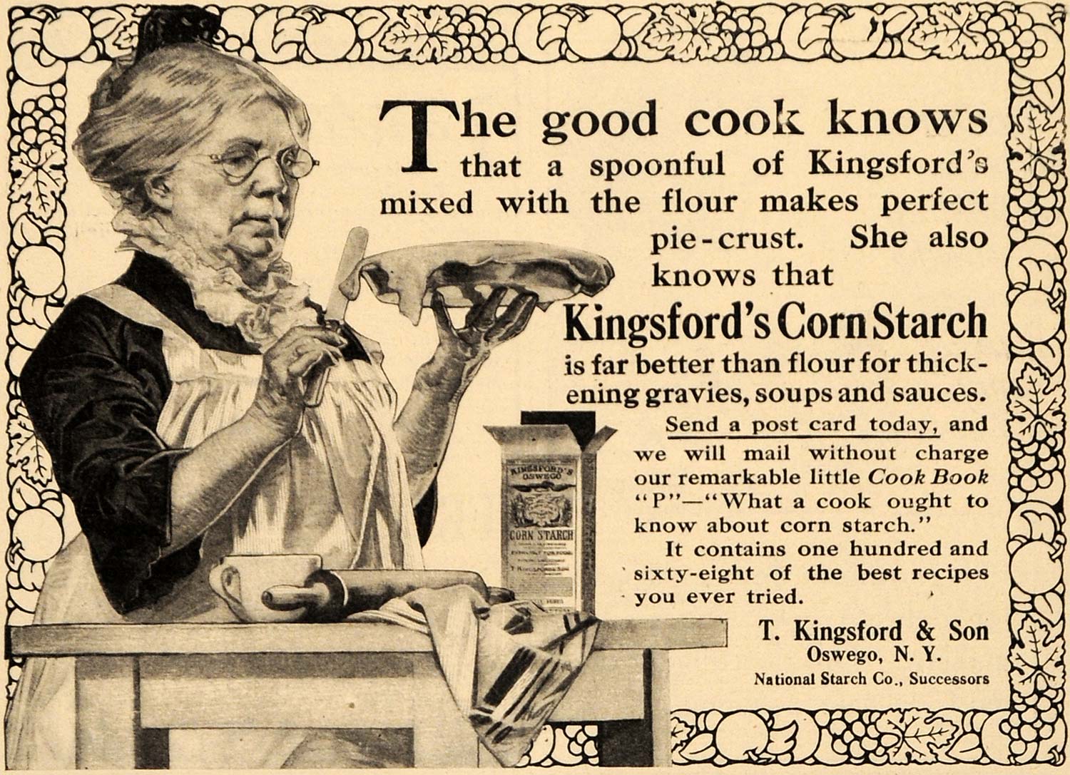 Keywords specific to this image: Oswego New York, National Starch Company, Roller Pin, Butter Knife, Apron Vintage Advertising