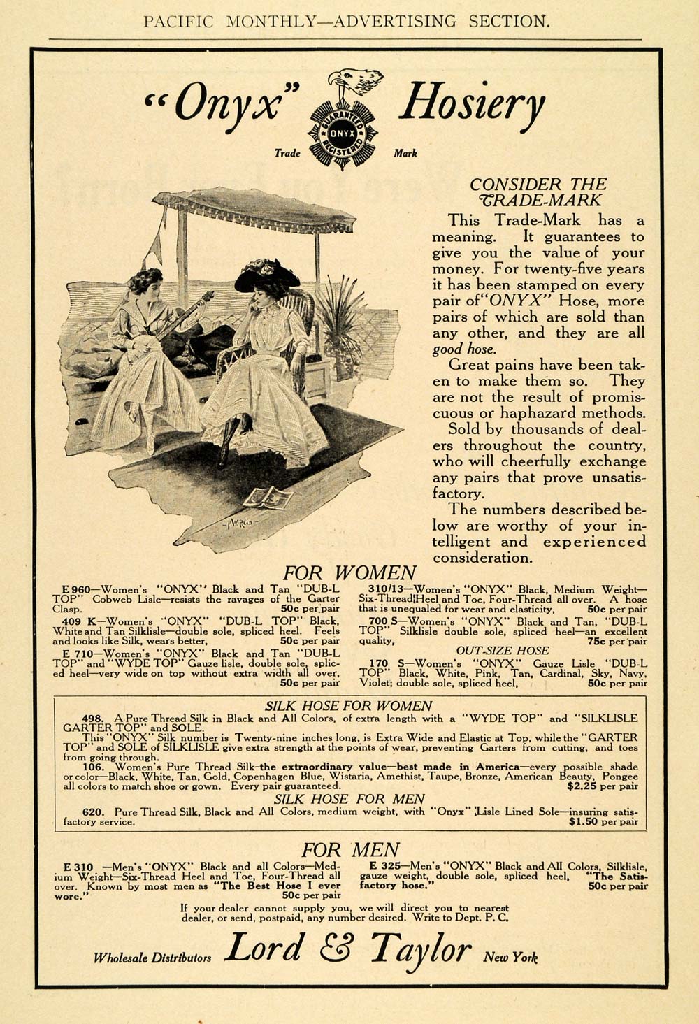 This is an original 1910 black and white print ad for Lord & Taylor's line of "Onyx" Hosiery.