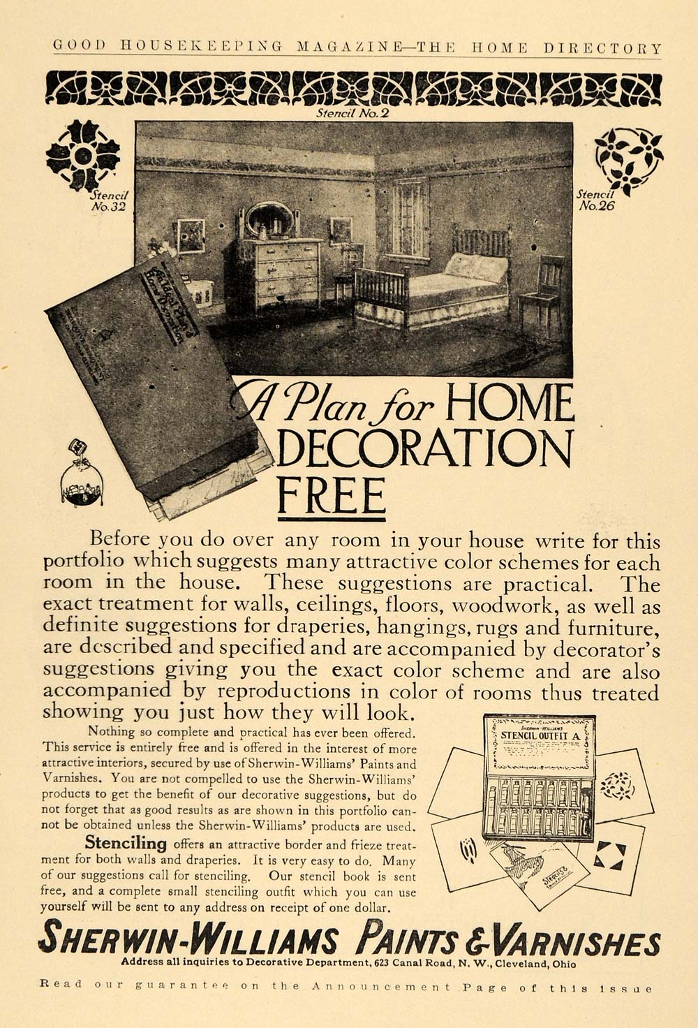 This is an original 1910 black and white print ad for the Sherwin-Williams Paints & Varnishes located at 623 Canal Road, Cleveland, Ohio.