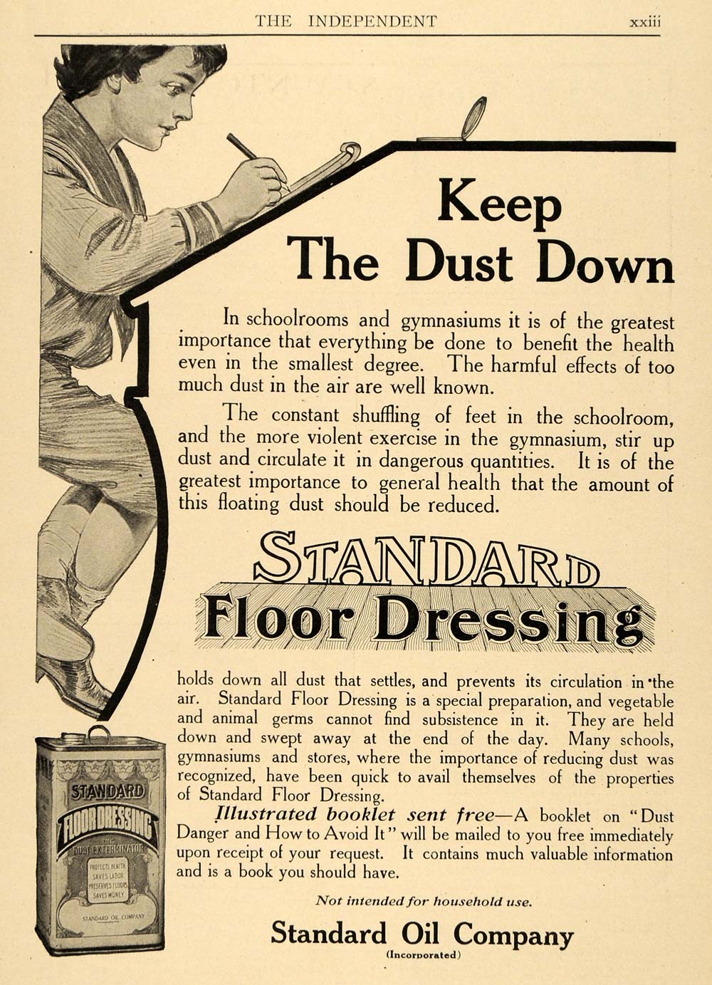 This is an original 1910 black and white print ad for the Standard Floor Dressings from Standard Oil Company, Incorporated.