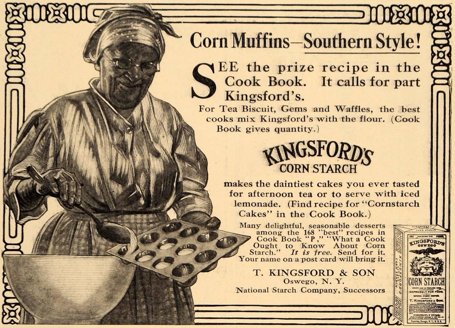 This is an original 1910 black and white print ad promoting the Kingsford's Corn Starch from T. Kingsford & Son located in Oswego, New York.