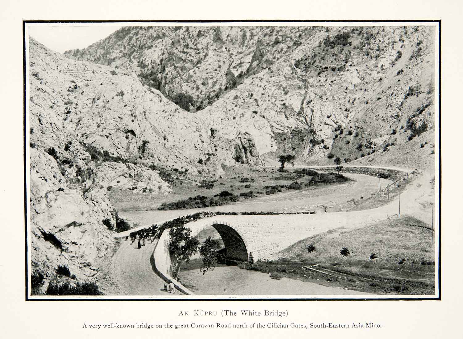 This is an original 1910 black and white halftone print of the "Ak Kupru (the White Bridge)," in Asia Minor/Turkey.