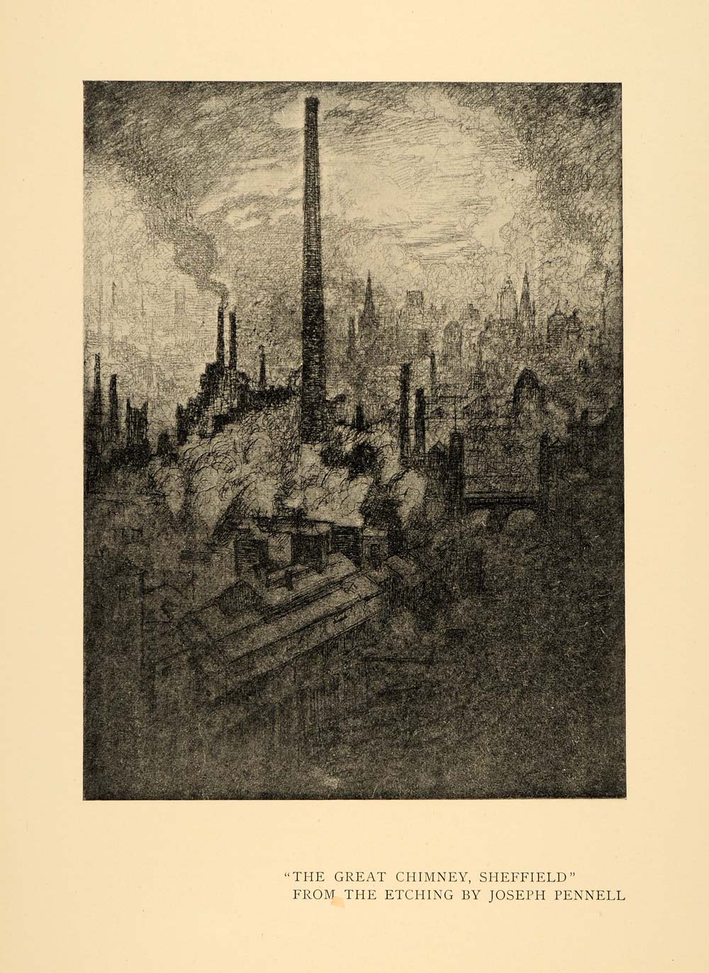 1910 Print Art Joseph Pennell Great Chimney Sheffield - ORIGINAL HISTORIC INS2