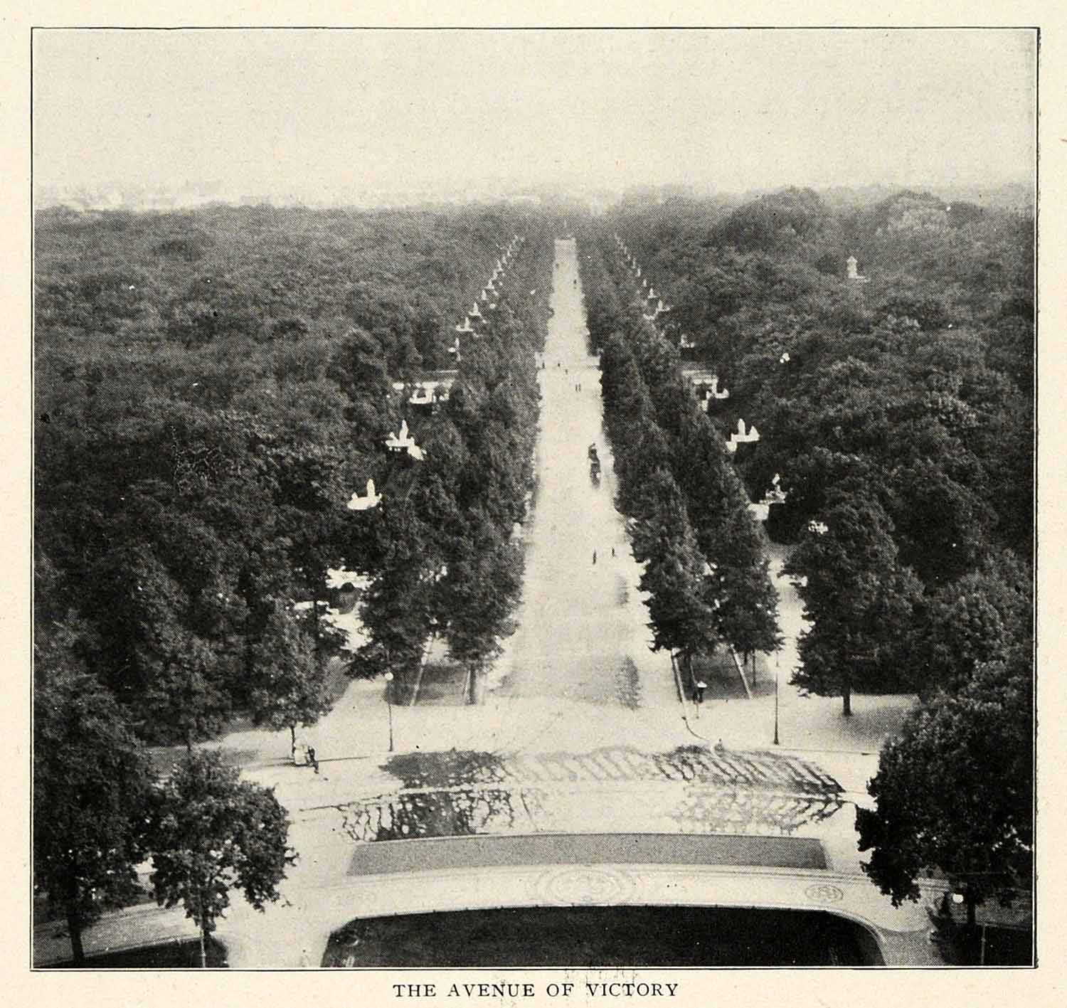This is an original 1910 halftone print of the Avenue of Victory in Berlin, Germany.