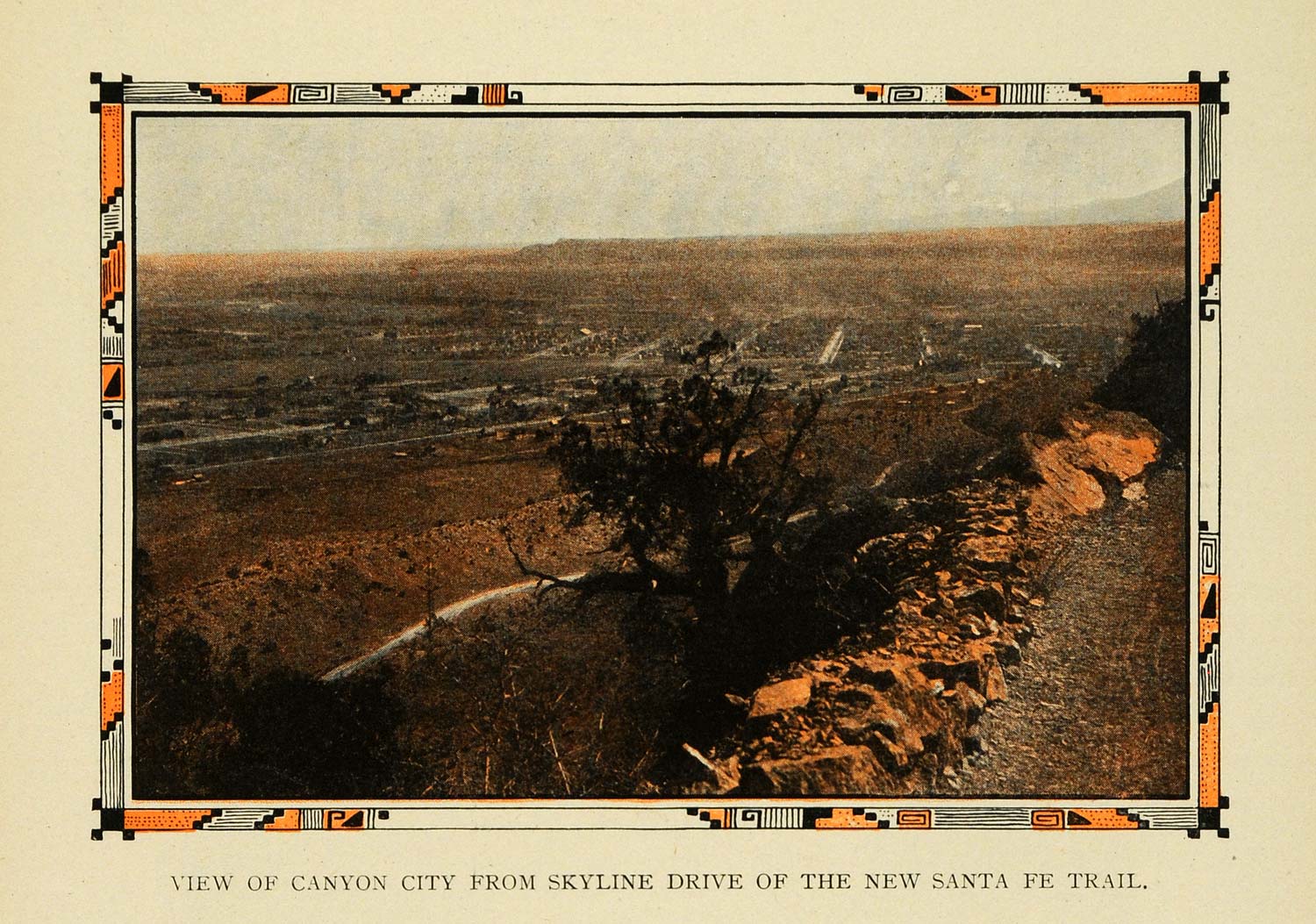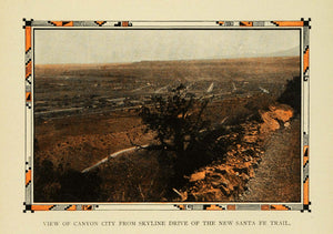 This is an original 1910 halftone print of Canyon City from the Santa Fe Trail of Colorado and New Mexico. The trail was created as a transportation route in the 19th century from Missouri to New Mexico.