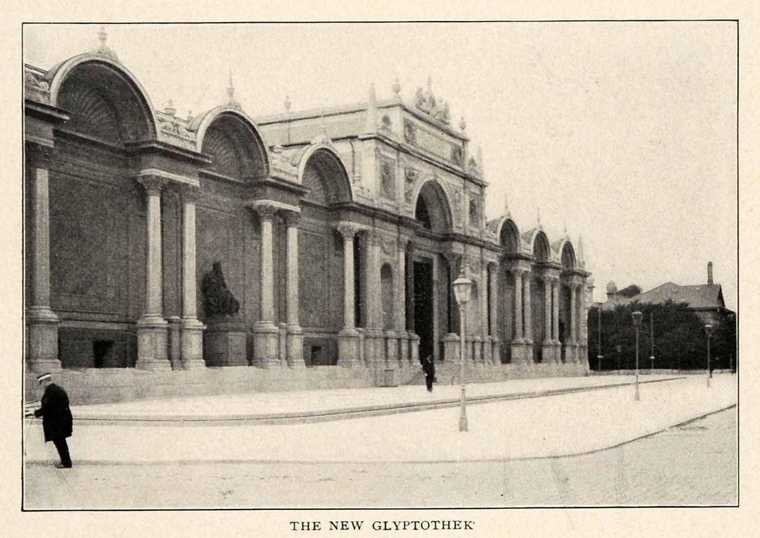 This is an original 1910 halftone print of the Ny Carlsberg Glyptothek (museum) in Copenhagen, Denmark.