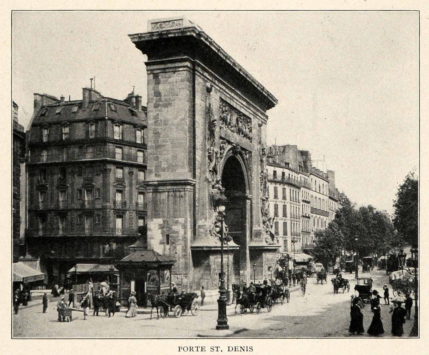 This is an original 1910 halftone print of La Porte St. Denis, in Paris, France, which was once a gate in the city's fortification walls. Please note the dimensions of this item.