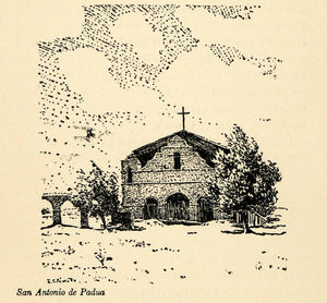 1910 Print San Antonio de Padua Spanish Mission Alta California Peixotto XGL6