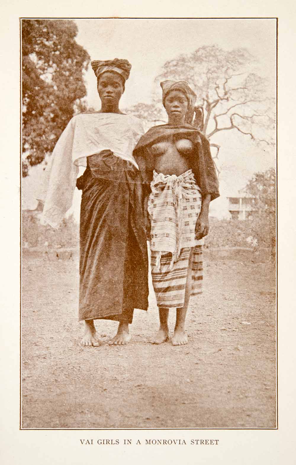 This is an original 1910 duotone halftone print of girls from the Vai ethnic group in Liberia and Sierra Leone.