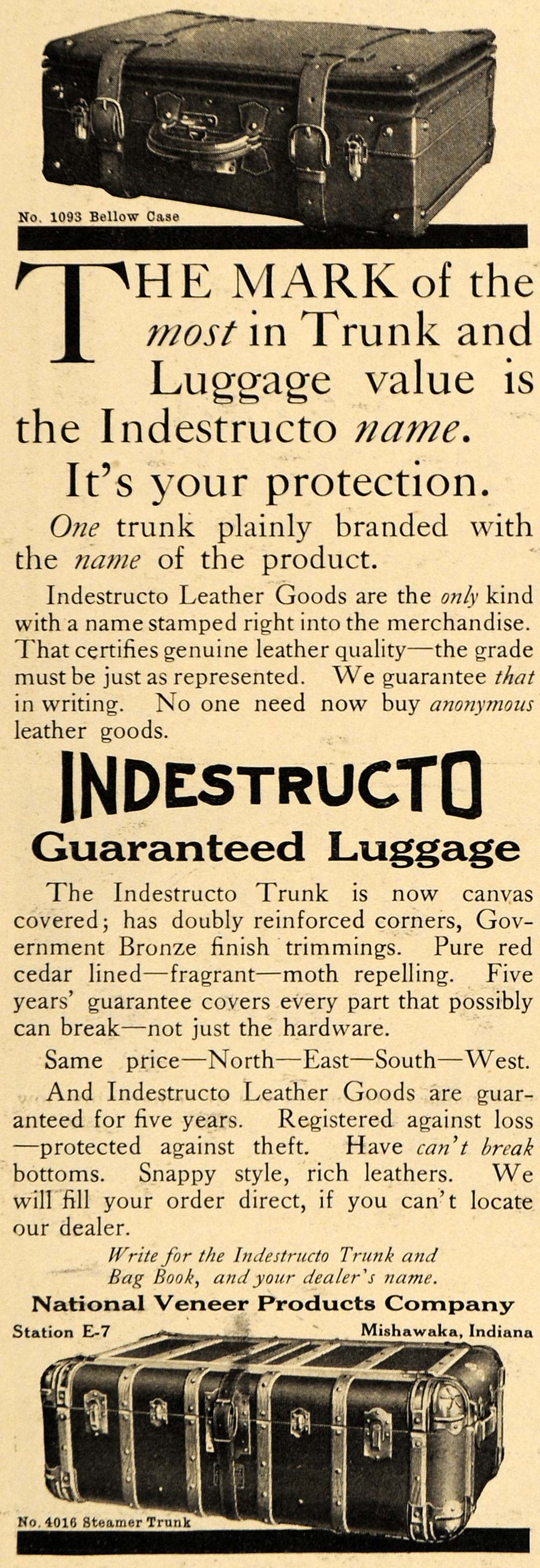 This is an original 1911 black and white print ad for the Bellow Case (No. 1093) and Steamer Trunk (No. 4016) by the National Veneer Products Company located in Mishawaka, Indiana.