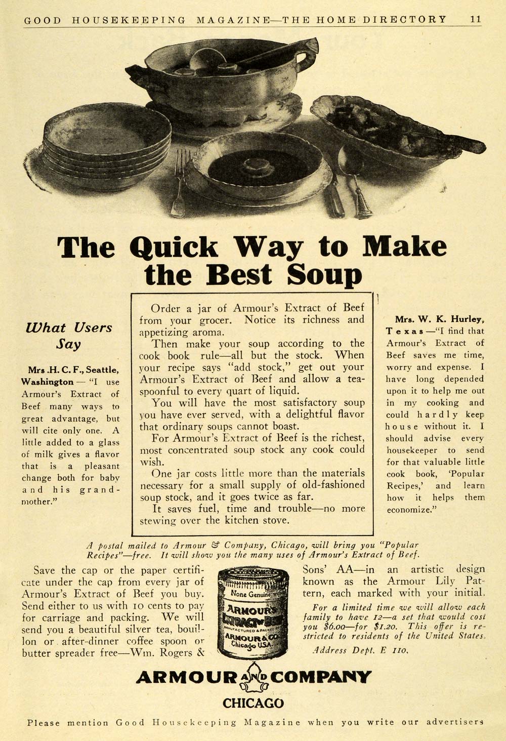 1911 Ad Armour Beef Extract Soup Tin Chicago William Rogers W. K. Hurley GH4