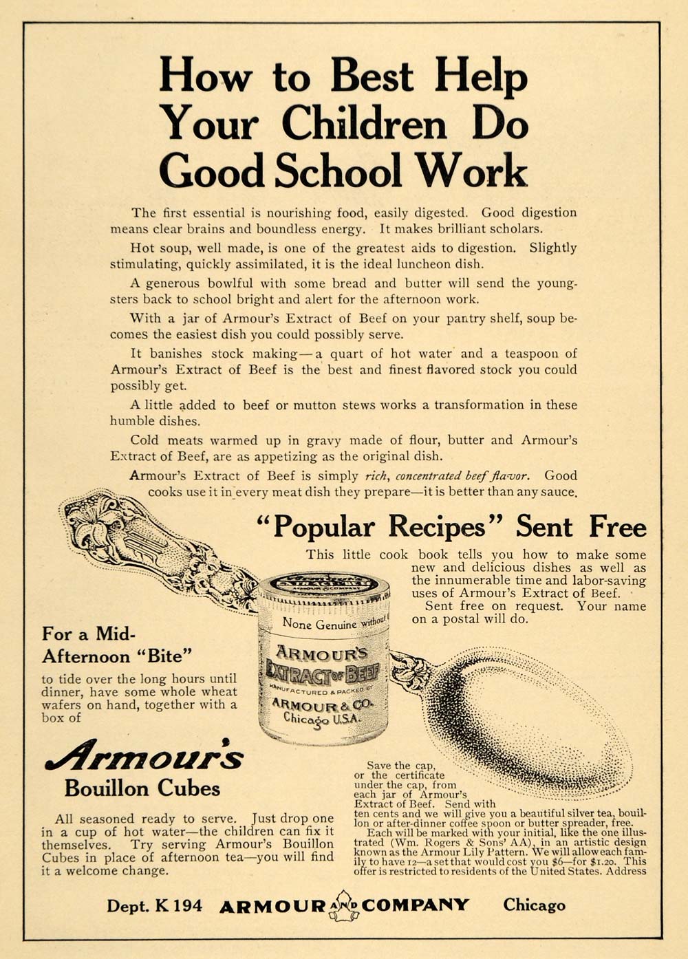 1911 Ad Armour Extract Beef Bouillon Cube Cooking Soup Broth Stock HM1