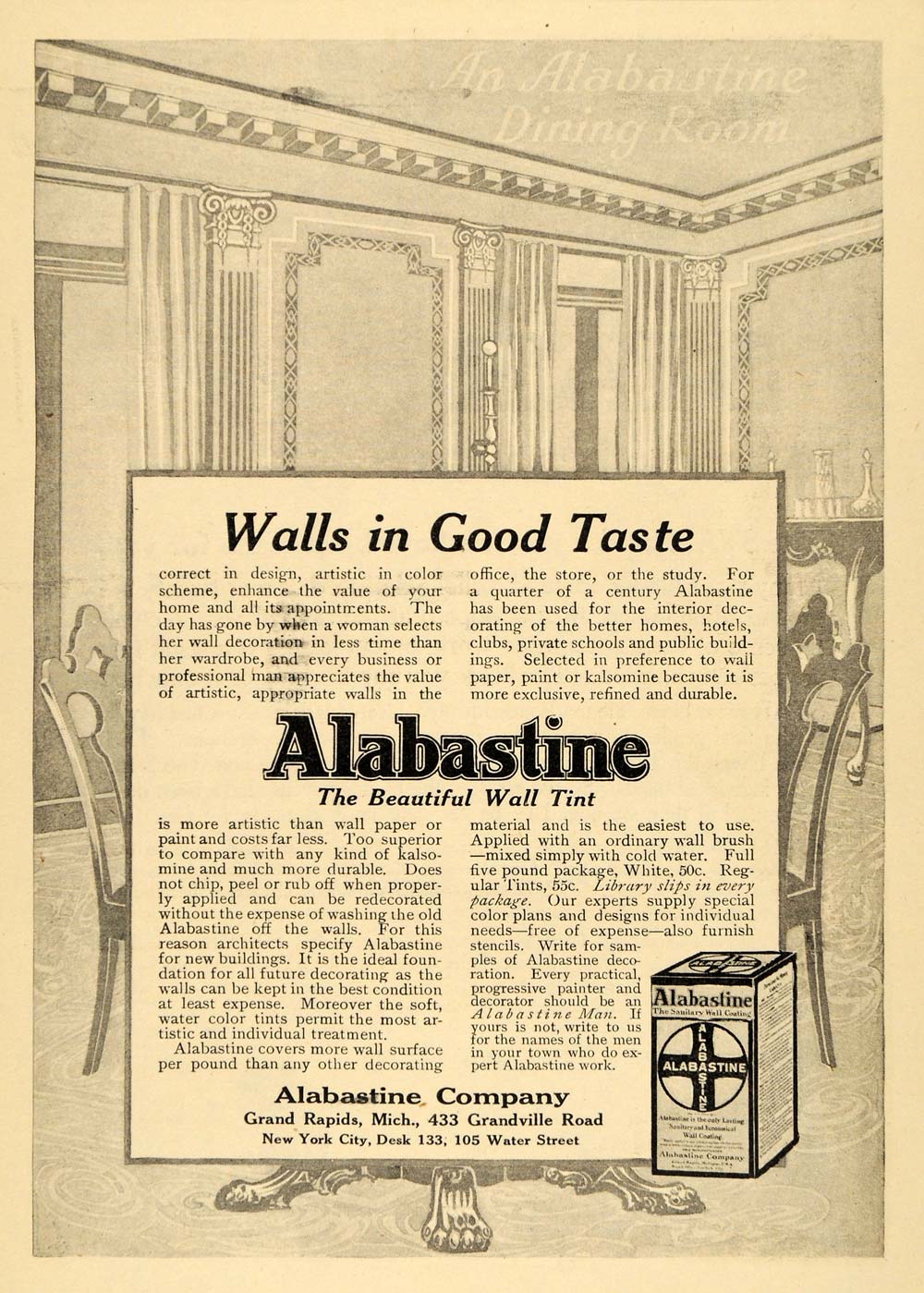 This is an original 1911 black and white print ad for Albastine Wall Tint by the Albastine Company located at 433 Grandville Road, Grand Rapids, Michigan and 105 Water Street, New York City.