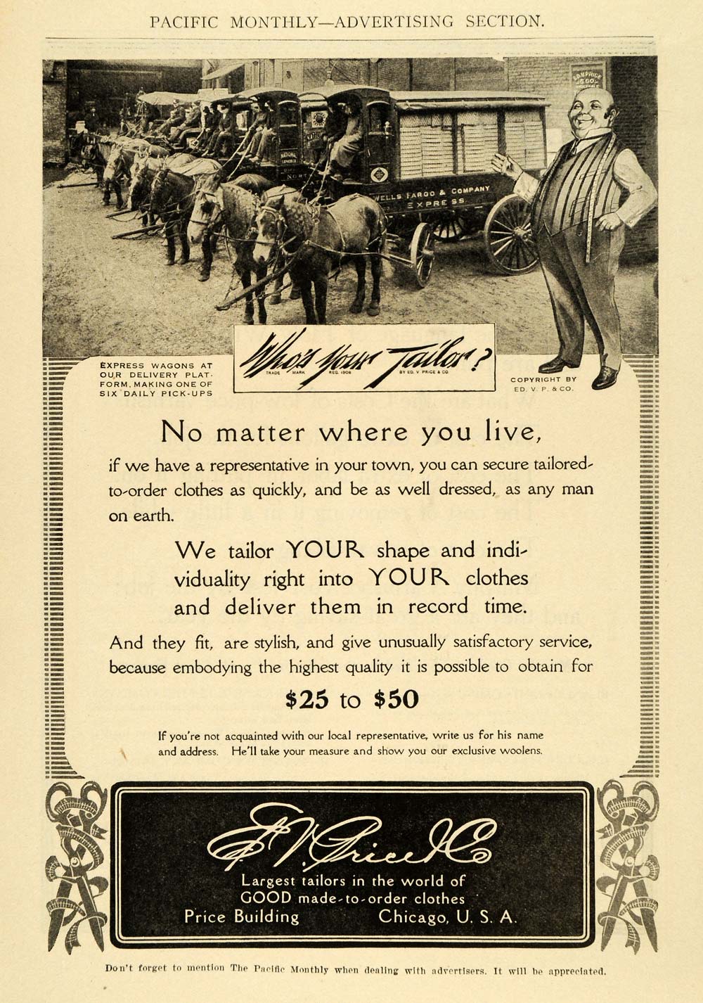 This is an original 1911 black and white print ad for Ed V. Price Tailoring of Chicago.