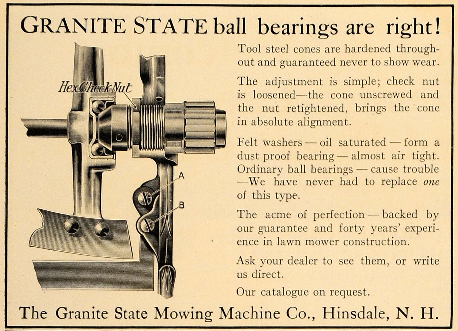 This is an original 1911 black and white print ad for the Granite State Mowing Machine Company located in Hinsdale, New Hampshire.