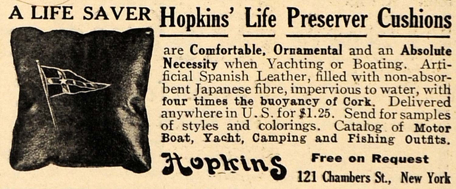 1911 Ad Life Saver Hopkins' Life Preserver Cushion - ORIGINAL ADVERTISING EM1