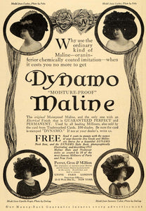 This is an original 1911 black and white print ad for the Dynamo Moisture-Proof Maline from Perret, Gros & Million located in New York.