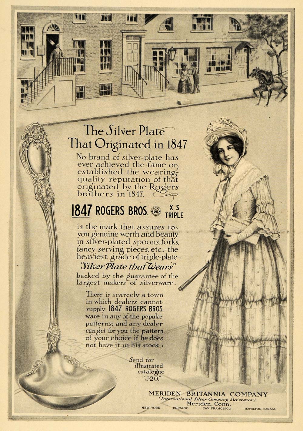 This is an original 1911 black and white print ad for the Meriden Britannia Company of Meriden, Connecticut. The ad shows the 1847 Roger Brothers silver-plated spoon.