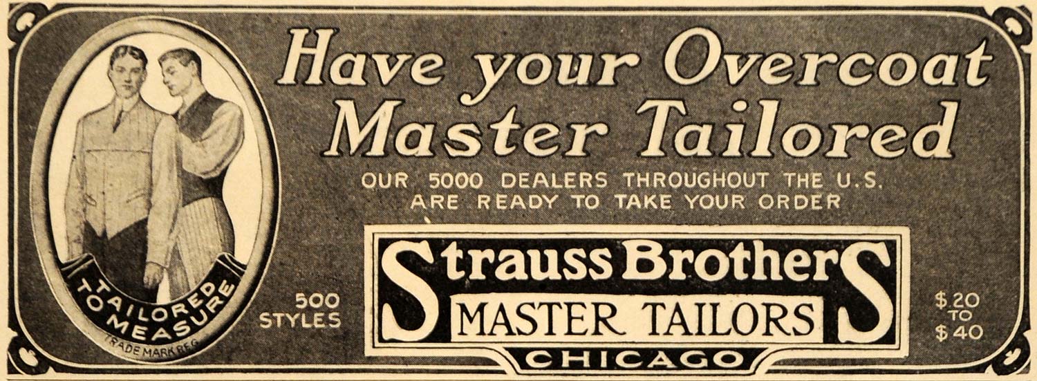 This is an original 1911 black and white print ad for Strauss Brothers Master Tailors of Chicago.