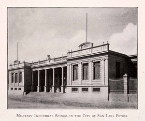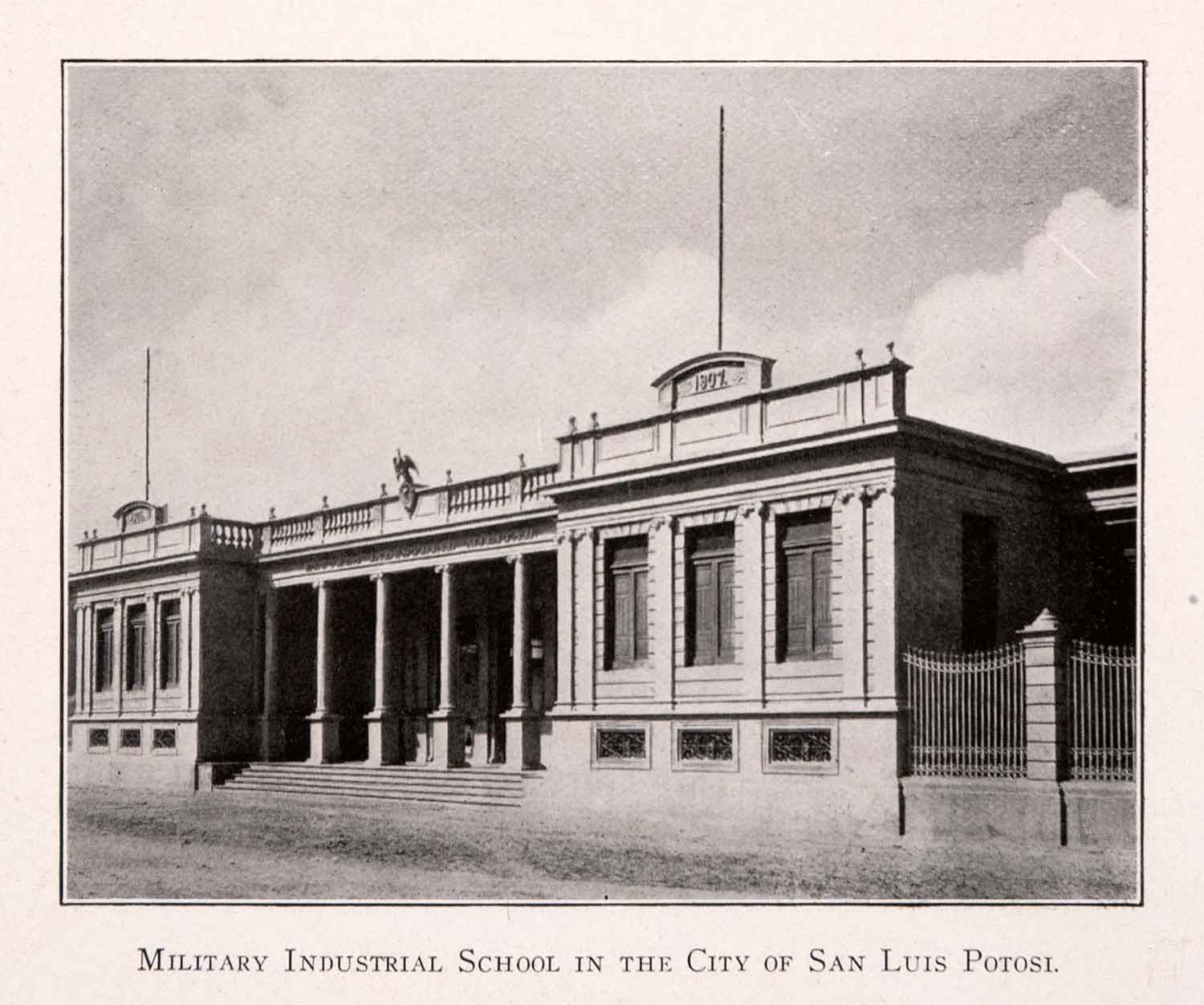 This is an original 1911 black and white halftone print of "Military Industrial School in the City of San Luis Potosi."