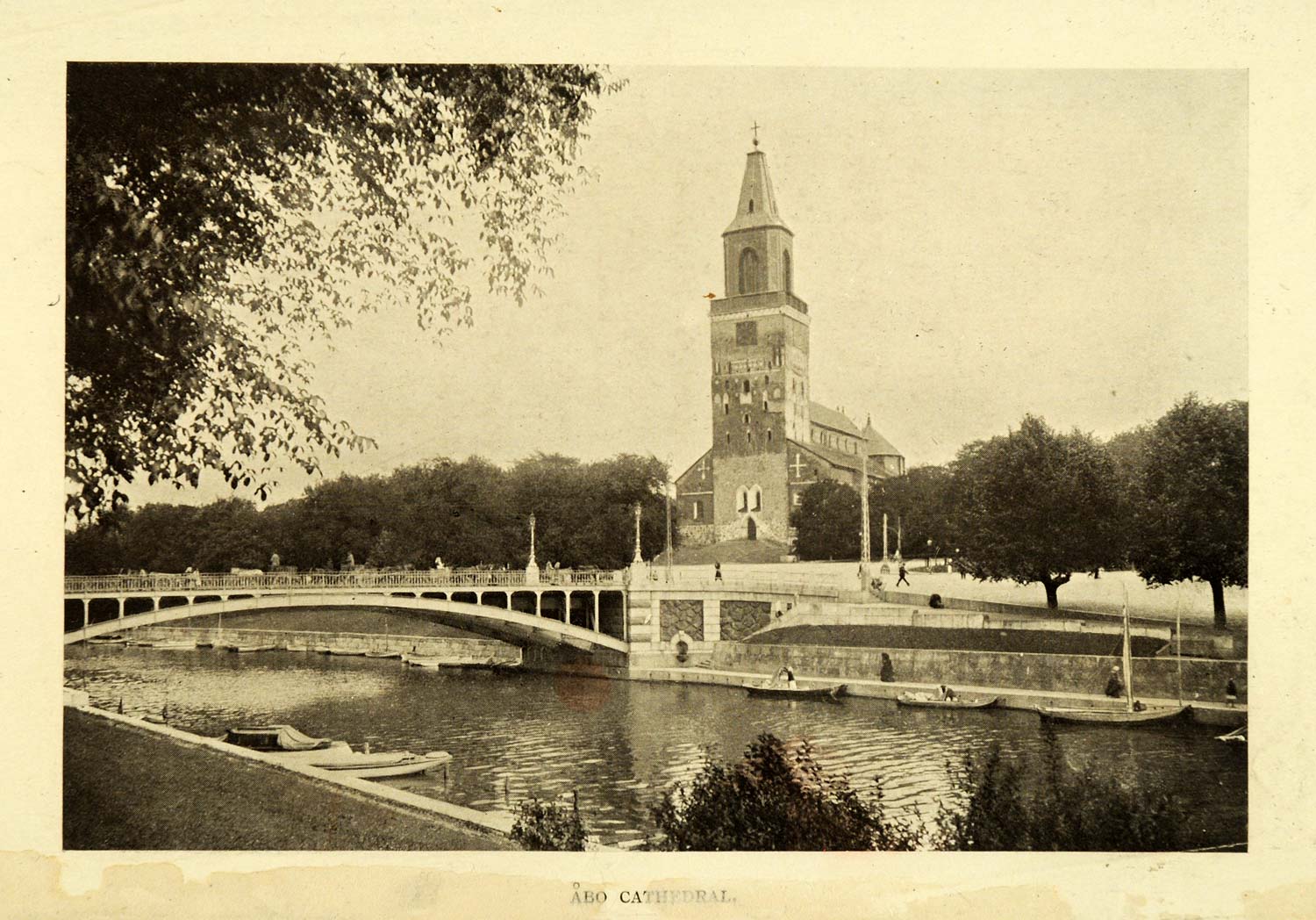 This is an original 1911 halftone print of the Turku Cathedral in Turku, Finland (Suomi). The cathedral is the mother church of the Evangelical Lutheran Church of Finland, and was built in the late 13th century.