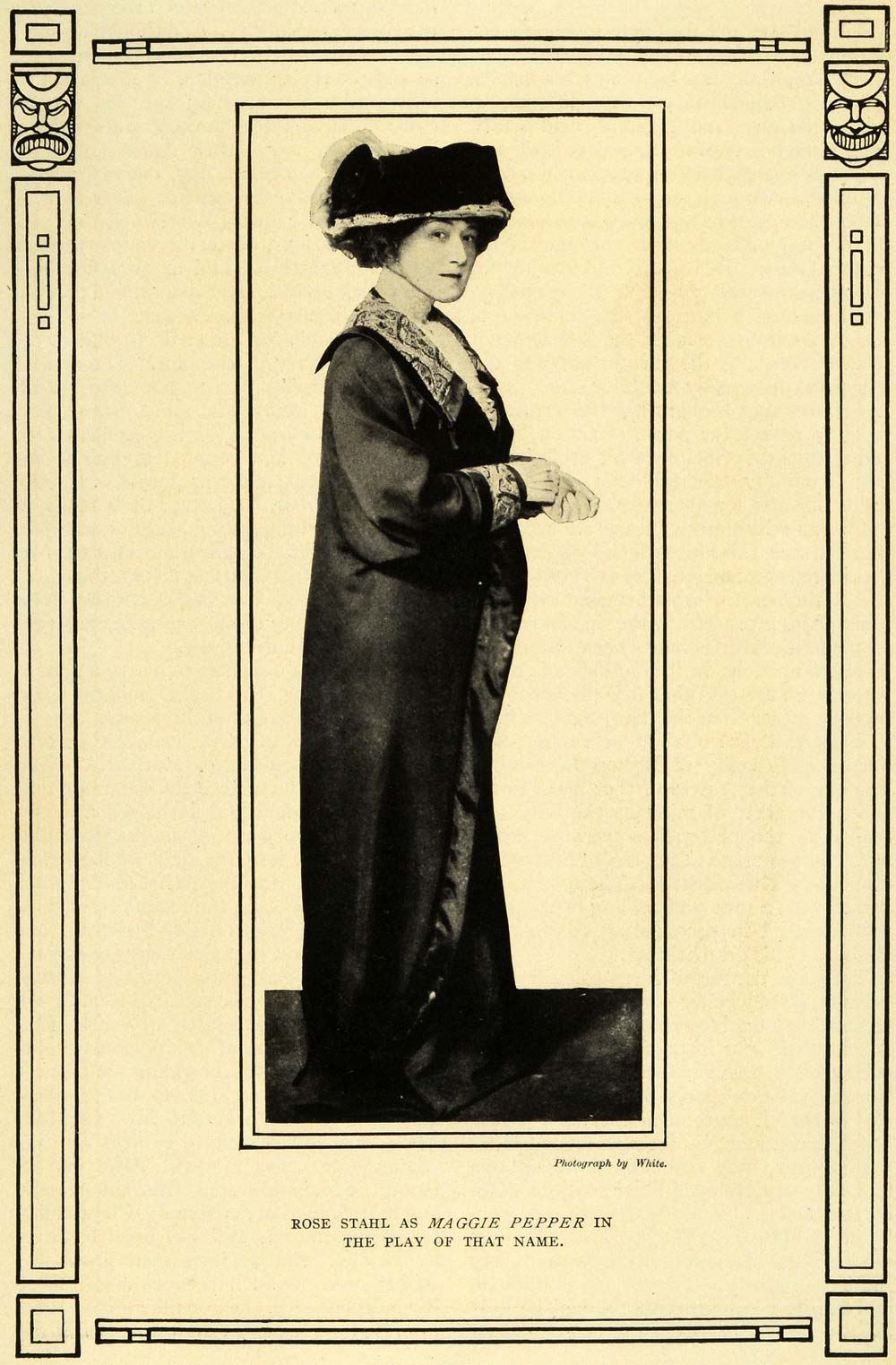 This is an original 1911 halftone print with art nouveau border of actress Rose Stahl as "Maggie Pepper." Photography by White.