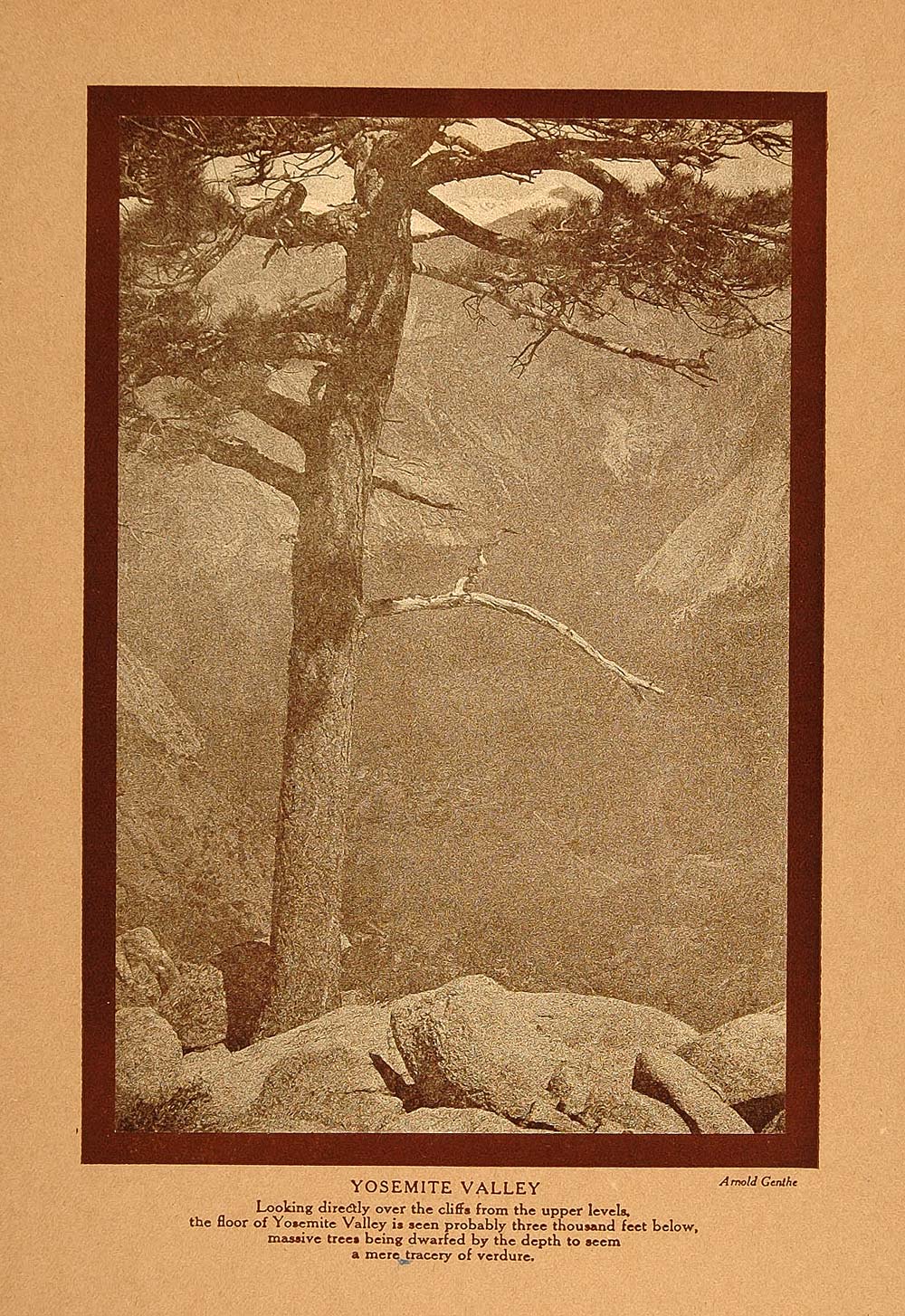 "Yosemite Valley." This is an original hand-tipped sepia print, from 1911, of a photograph by Arnold Genthe of the Yosemite Valley, looking directly over the cliffs.