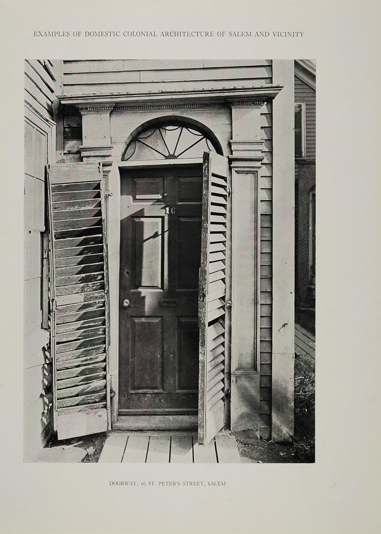 This is an original 1911 halftone print of the door to the house at 16 St. Peter's Street in Salem, Massachusetts.