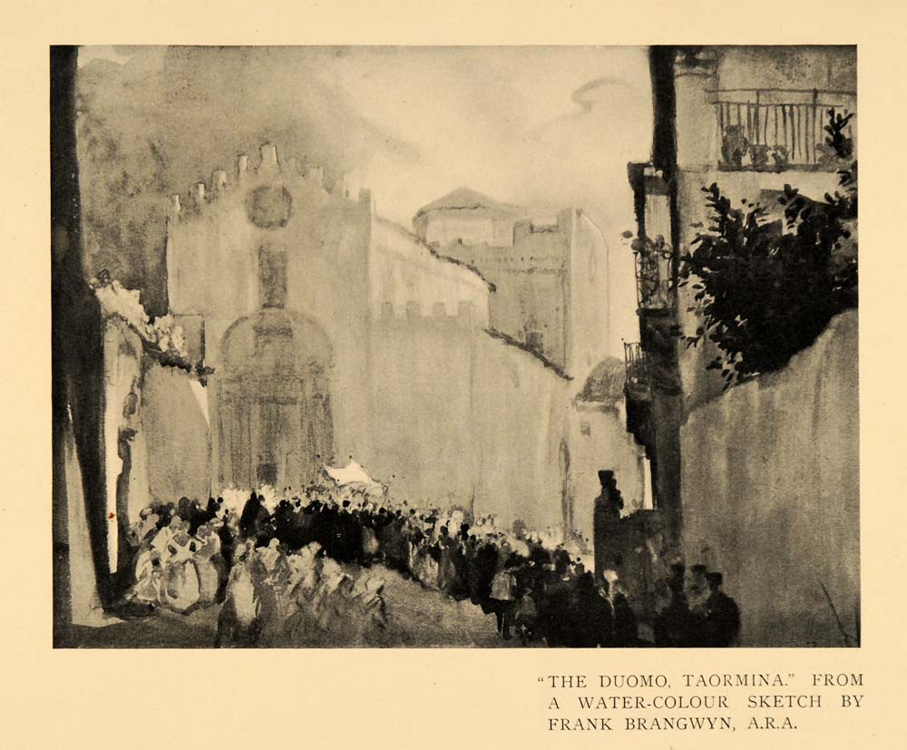 1911 Print Duomo Dome Cathedral Taormina Watercolor Art ORIGINAL HISTORIC INS2
