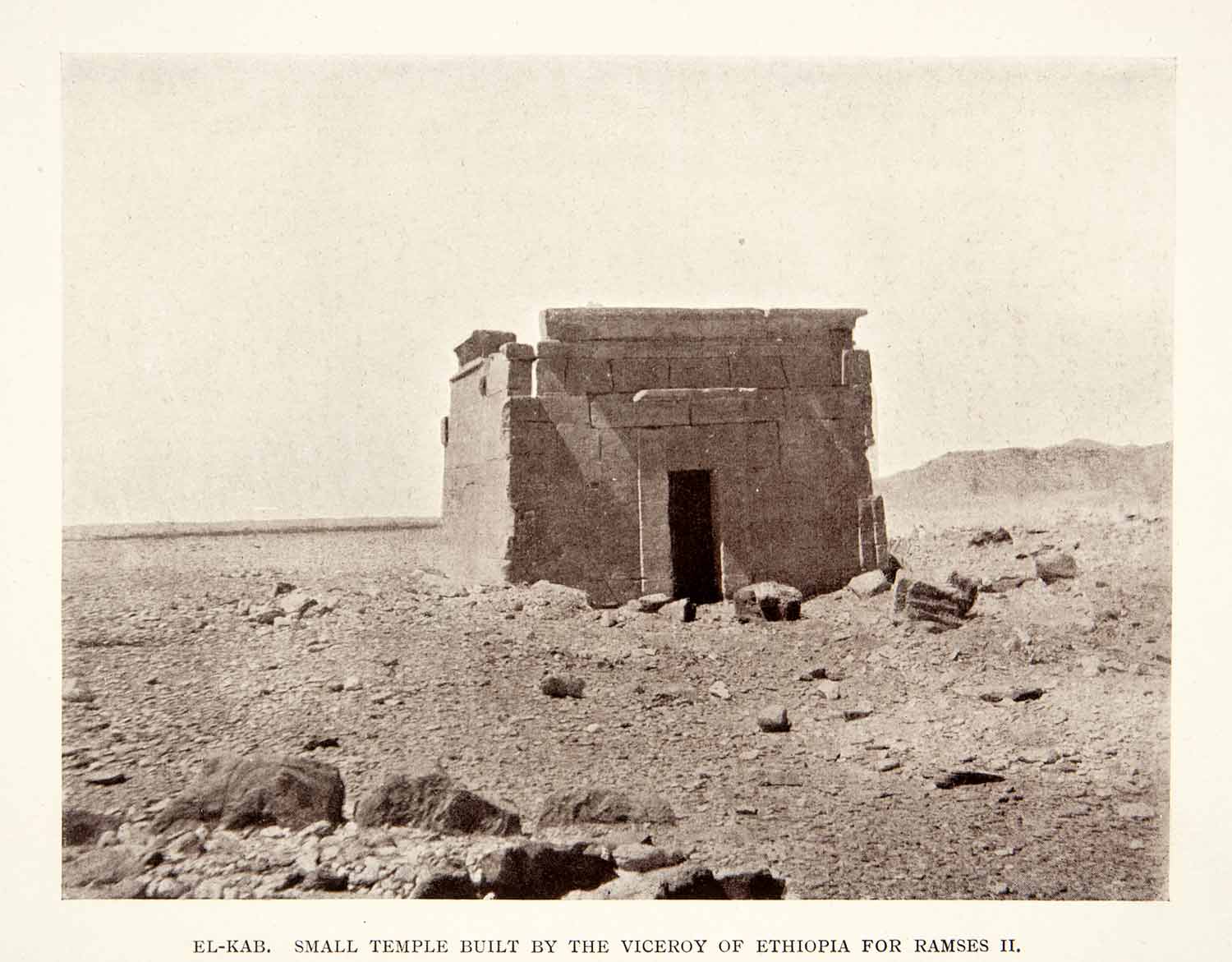 This is an original 1911 black and white halftone print of a small temple by the viceroy of Ethiopia for Ramses II.