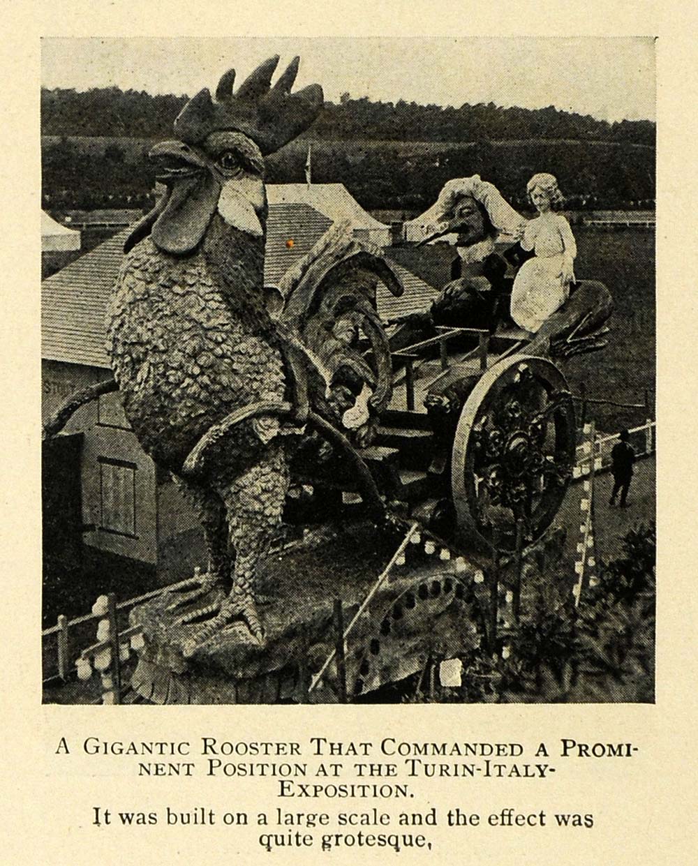 This is an original 1911 halftone print featuring an image of the Gigantic Rooster that commanded a prominent position at the Turin- Italy Exposition.