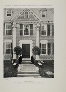 This is an original 1911 halftone print of the front entrance and door of "The Lindens," the Francis Peabody Estate in Danvers, Massachusetts, built in 1745 (1754?) for "King" Hooper. It also served as the headquarters of the British General and Massachusetts Governor, General Thomas Gage, in 1774. The house was moved to the Kalorama neighborhood of Washington, D.C. in 1935.