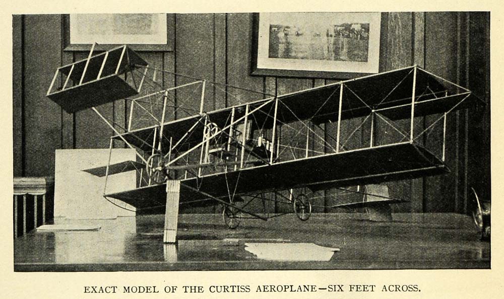 This is an original 1911 halftone print featuring a miniature reproduction of the Curtiss Aeroplane.