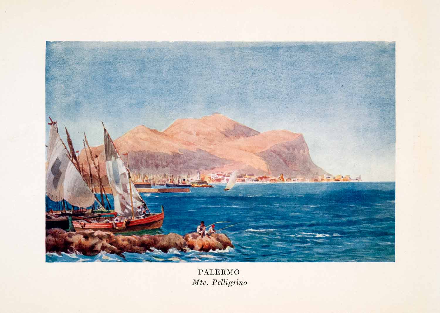 1911 Print Palermo Italy Mountain Pelligrino Sea Sailboats William Wiehe XGHA4