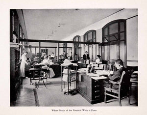 This is an original 1911 halftone print of a view of a room where much of the practical work is done in the Pan American Union building in the United States of America.